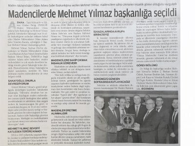 Geleneksel olarak her yıl yapmış olduğumuz 29. Madenciler Gecesi Balosu görev değişiminin de etkisi ile adana yerel basınında geniş yer aldı.