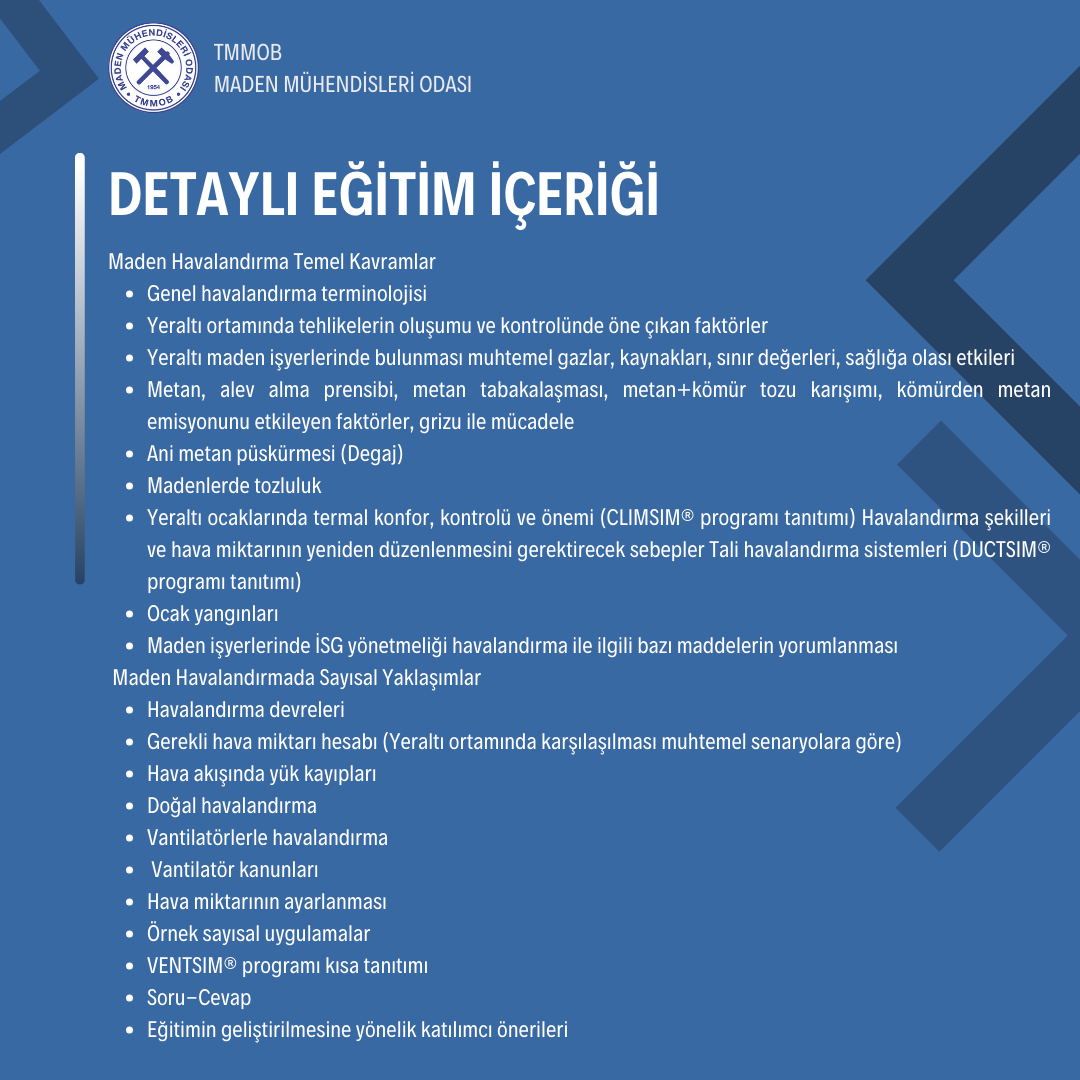25-26 EKİM 2024 TARİHLERİNDE MADENLERDE HAVALANDIRMA EĞİTİMİ DÜZENLENMİŞTİR.