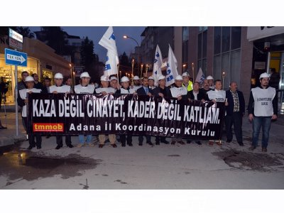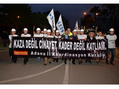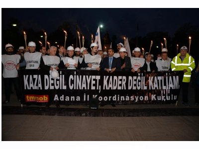 TMMOB Adana İl Koordinasyon Kurulu ve şubemiz öncülüğünde 3 Mart 2015 Salı günü saat 17.30 da meşaleli yürüyüş ve basın açıklaması düzenlendi. Yürüyüş TMMOB Maden Mühendisleri Odası Adana Şubesi önünde toplanılarak Atatürk Parkına doğru yürüyüşe geçildi.Yürüyüş basın açıklamasıyla sona erdi.