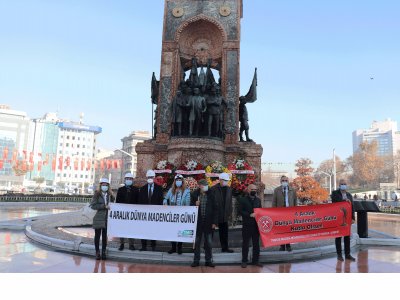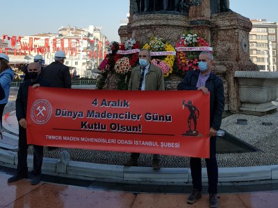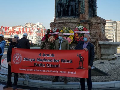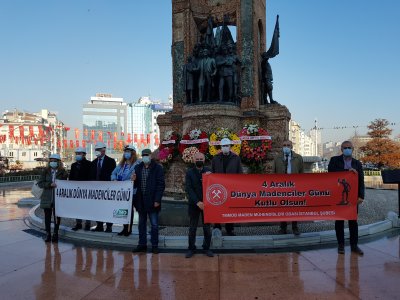 Dünya Madenciler Günü nedeniyle 4 Aralık 2020 Cuma günü saat 11.00de Taksim Cumhuriyet Anıtına çelenk koyma töreni yapıldı.