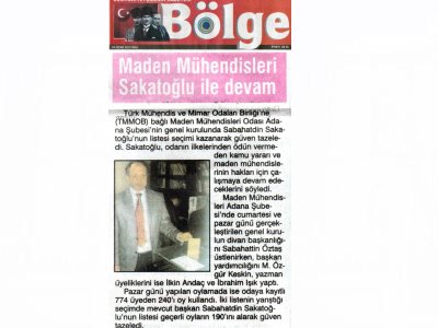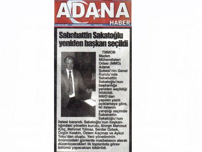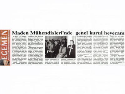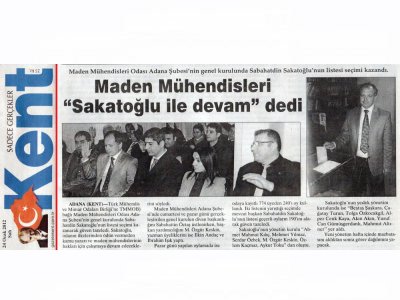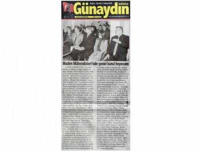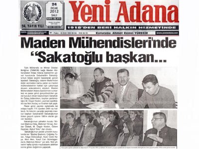 21-22 Ocak 2012 tarihinde gerçekleştirilen Maden Mühendisleri Odası Adana Şubesi 6. Dönem Olağan Genel Kurulu ve seçimlerine, 23-24 Ocak 2012 tarihli gazetelerde geniş yer verildi.