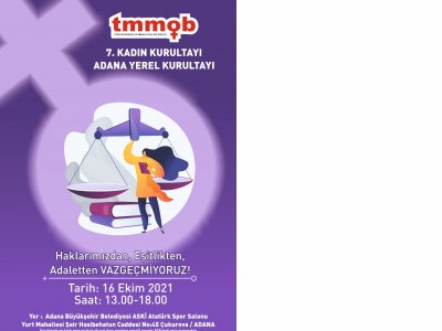 16 Ekim 2021 Cumartesi Günü TMMOB Adana İl Koordinasyon Kurulu Kadın Çalışma Grubunun tarafından düzenlenen 7. Adana Yerel Kadın Kurultayı ‘na Şube Yazmanımız Elif DİNÇER ve Şubemiz Üyelerinden Zerrin YORULMAZ şubemiz adına katılım sağladılar.