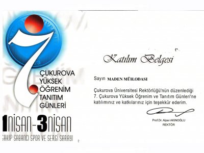 TMMOB Maden Mühendisleri Odası Adana Şubesi, Çukurova Üniversitesi Rektörlüğünün 01- 03 Nisan 2009 tarihleri arasında Sakıp Sabancı Spor ve Sergi salonunda düzenlemiş olduğu "7.Çukurova Tanıtım Günleri" etkinliklerinde Stand açarak katılım sağlamıştır.