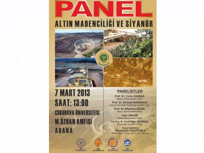 TMMOB bileşenlerini oluşturan Maden Mühendisleri Odası, Jeoloji Mühendisleri Odası, Kimya Mühendisleri Odası ile Çevre Mühendisleri Odası Adana Şubeleri ile Çukurova Üniversitesi Maden, Jeoloji, Çevre ve Kimya Mühendislikleri Bölümlerinin Öğrencilerine yönelik ortaklaşa düzenlenen "Altın Madenciliği ve Siyanür" konulu Panel 7 Mart 2013 tarihinde Çukurova Üniversitesi Mithat Özsan Amfisinde gerçekleşti.