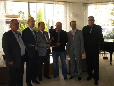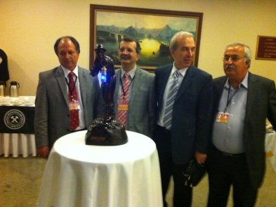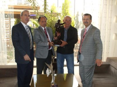 Bölgemizdeki madencilik faaliyetlerinin öncüsü olan Pınar Madencilik Turizm A.Ş. Ortaklarından Ataman FEDAİ‘nin Madencilik sektöründen ayrılması nedeni ile Maden Mühendisleri Odası olarak bugüne kadar odamıza ve madencilik sektörüne yapmış olduğu desteklerden dolayı Madenci heykeli vererek kendisine teşekkür edilmiştir.