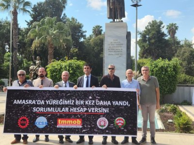 Enerji ve Tabii Kaynaklar Bakanlığına bağlı Türkiye Taşkömürü Kurumu’na ait Amasra Taşkömürü İşletme Müessesesine bağlı yeraltı kömür ocağında 14 Ekim 2022 tarihinde akşam saatlerinde, yerin 350 metre altında meydana gelen patlama sonrası 41 maden emekçisinin hayatını kaybettiği maden faciasıyla ilgili, DİSK, KESK, TMMOB Adana İKK, Adana Tabip Odası ve Adana Barosu ortak basın açıklamasını Şube Başkanımız Recai CAN yaptı.