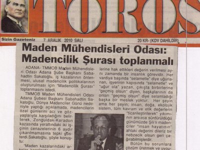 4 Aralık 2010 Madenciler Günü nedeniyle Şube Başkanımız Sabahatdin SAKATOĞLU basına açıklama yapmıştır.
