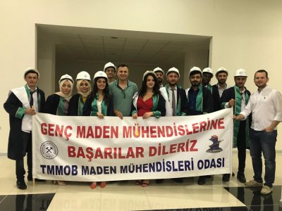 Çukurova Üniversitesi Maden Mühendisliği Bölümünü bitiren Genç madenci mezun oldu. Maden Mühendisleri Odası Adana Şubesi adına yönetim kurulu saymanımız İbrahim IŞIK, Yönetim kurulu Üyeiz Ali Can ÖZDEMİR ve Y. Yönetim Kurulu Üyemiz Raif Bozdemir mezuniyet törenine katıldılar. Diplomalarını alan Genç Maden Mühendisi arkadaşlarımıza odamız tarafından mesleğe hoş geldiniz sertifikası, oda rozeti, çanta, baret, odamızın kırtasiye ürünleri takdim edildi. Genç madenci arkadaşlarımıza başarılar dileriz.
