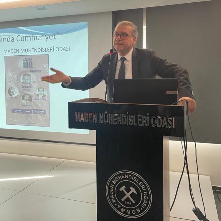 Cumhuriyet'in 100.yılı dolayısıyla Oda Genel Merkezimizde panel düzenlenmiştir. Panelde, Cumhuriyet'in kuruluş süreci, madencilik ve Odamızın tarihi ile ilgili konular konuşulmuştur. Sayın Erdal Atıcı'nın Cumhuriyet'in kuruluş sürecini içeren sunumunun ve konuşmasının ardından , Sayın Nadir Avşaroğlu madenciliğin 100.yıllık serüvenini anlatan bir bilgilendirme yapmıştır. Son olarak da geçmiş dönem yönetim kurulu başkanlarımızdan Sayın Murat Turan Oda tarihimizi anlatan bir konuşmayla panele katılanları bilgilendirmiştir. Panelin ardından ise Odamızda Cumhuriyet Resepsiyonu düzenlenmiştir.