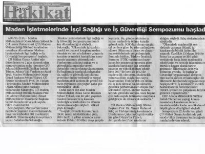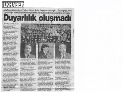 Maden Mühendisleri Odası Adana Şubesi ile Çukurova Üniversitesi Maden Mühendisliği Bölümü tarafından ortaklaşa düzenlenen ‘Maden İşletmelerinde İşçi Sağlığı ve İş Güvenliği Sempozyumu‘ 2015 yapıldı.