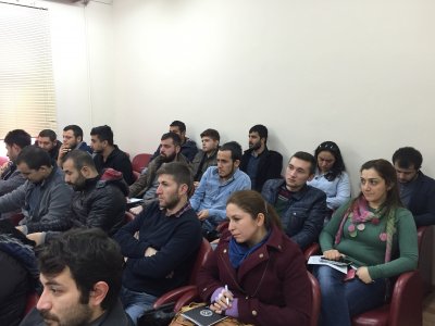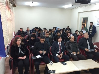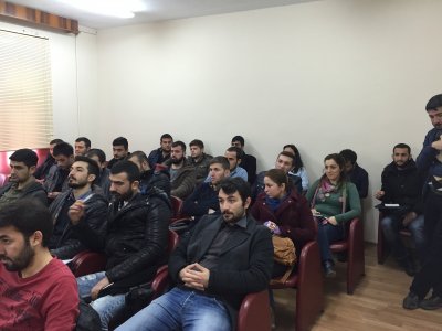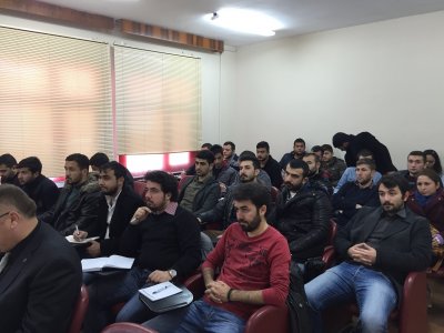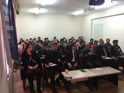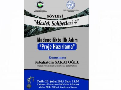 20 Şubat 2015 Cuma günü Çukurova Üniversitesi Mühendislik Mimarlık Fakültesi Konferans salonunda Maden Mühendisleri Odası Adana Şube Başkanı Sabahatdin SAKATOĞLU`nun konuşmacı olarak katıldığı Madencilikte İlk Adım "Proje Hazırlama" konusunda Çukurova üniversitesi maden mühendisliği bölüm öğrencilerine söyleşi yapıldı.