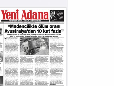3 Mart 2021 günü TMMOB Maden Mühendisleri Odası Adana Şube Başkanımız Mehmet YILMAZ, basın açıklaması ile 2010’dan 2020’ye ‘Madencilikte Yaşanan İş Kazaları Raporu’nu kamuoyuna açıkladı.