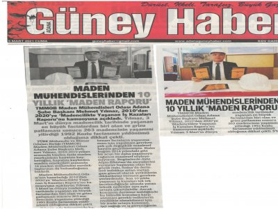 ŞUBE BAŞKANIMIZ MEHMET YILMAZ 2010DAN 2020YE MADENCİLİKTE YAŞANAN İŞ KAZALARI RAPORU BASIN AÇIKLAMASI BASINDA YER ALDI (05.03.2021)