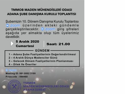 Şubemizin 10. Dönem Danışma Kurulu Toplantısı 5 Aralık Cumartesi ekli gündemle online olarak ZOOM üzerinden gerçekleştirildi. 5 Aralık Cumartesi Günü Saat: 21.00 'de, gerçekleştirilen toplantıya geniş katılım sağlandı. Görüş alış verişinde bulunulan toplantı dilek ve öneriler ile sonlandırıldı. Katılım sağlayan tüm üyelerimize teşekkür ederiz.