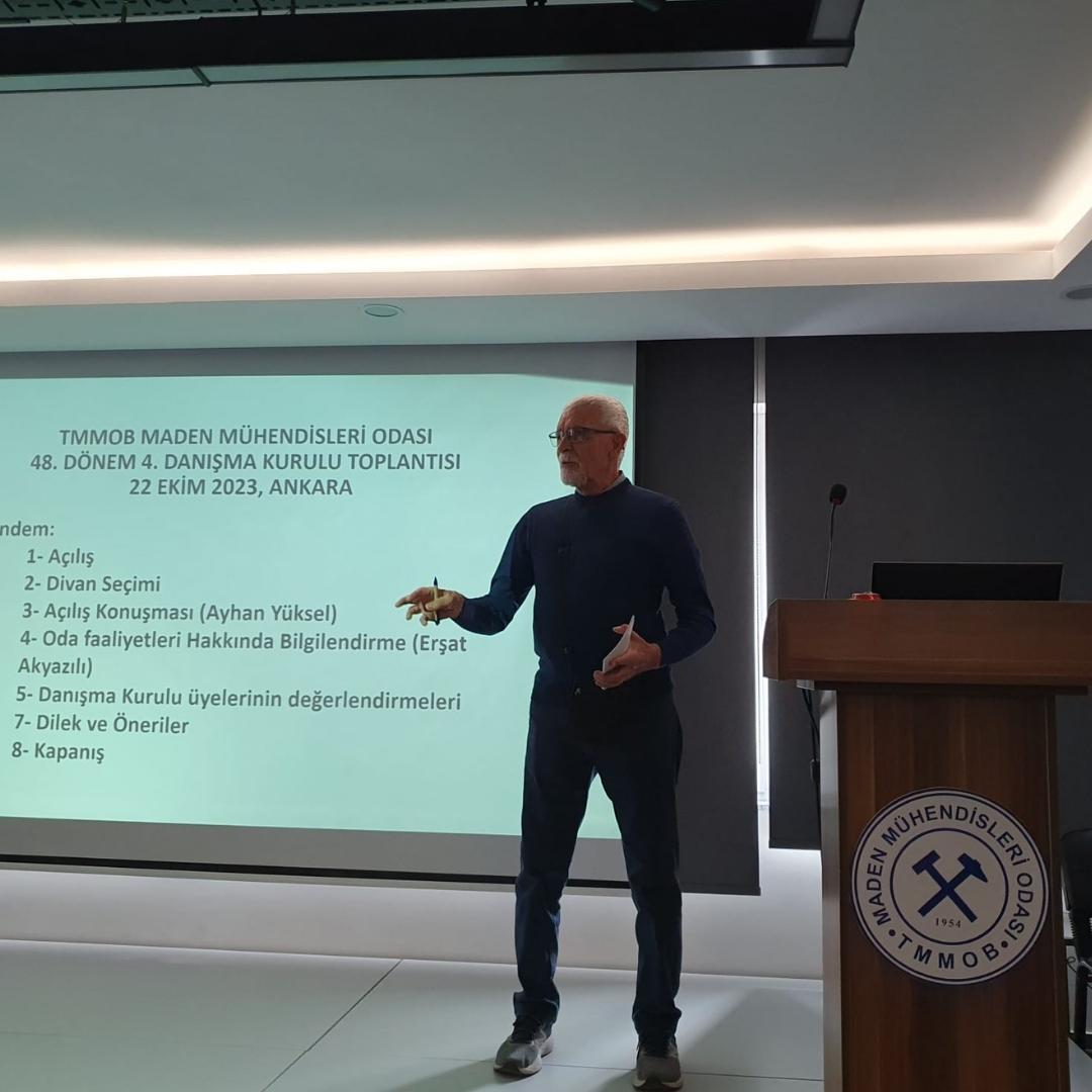 Odamız 48. Dönem IV. Danışma kurulu toplantısı 22 Ekim 2023 Pazar günü Odamız Genel Merkez hizmet binasında gerçekleştirildi. Toplantı, Oda Yönetim Kurulu Başkanı Ayhan Yüksel'in açılış konuşmasıyla başladı.