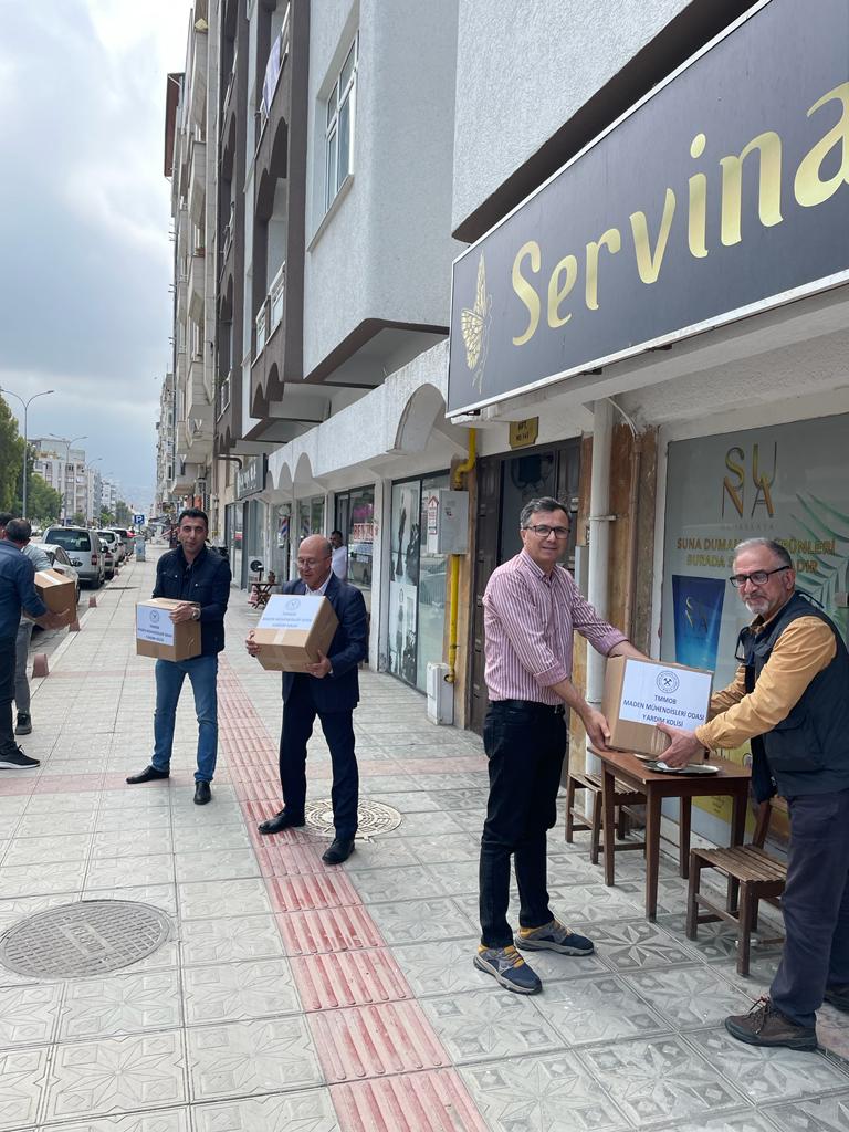 Odamız II.Başkan’ı Veyis Sır, Deprem Çalışma Grubu Başkanı Muharrem Toralıoğlu, Adana Şube Başkanı Recai Can ve Şube Yönetim Kurulu üyeleri Davut Yürek, İbrahim Işık, Bülent Zerengök ile Malatya İl Temsilcisi Ali Fırat’tan oluşan heyet; 6-7 Mayıs 2023 tarihlerinde depremden etkilenen İskenderun, Hatay, Malatya ve Adıyaman illerinde bulunmuşlardır. Depremden etkilenen çok sayıda insan ile görüşülmüş ve ihtiyaçlarını doğrultusunda Odamız tarafından hazırlanan yardım kolilerini ulaştırmışlardır.