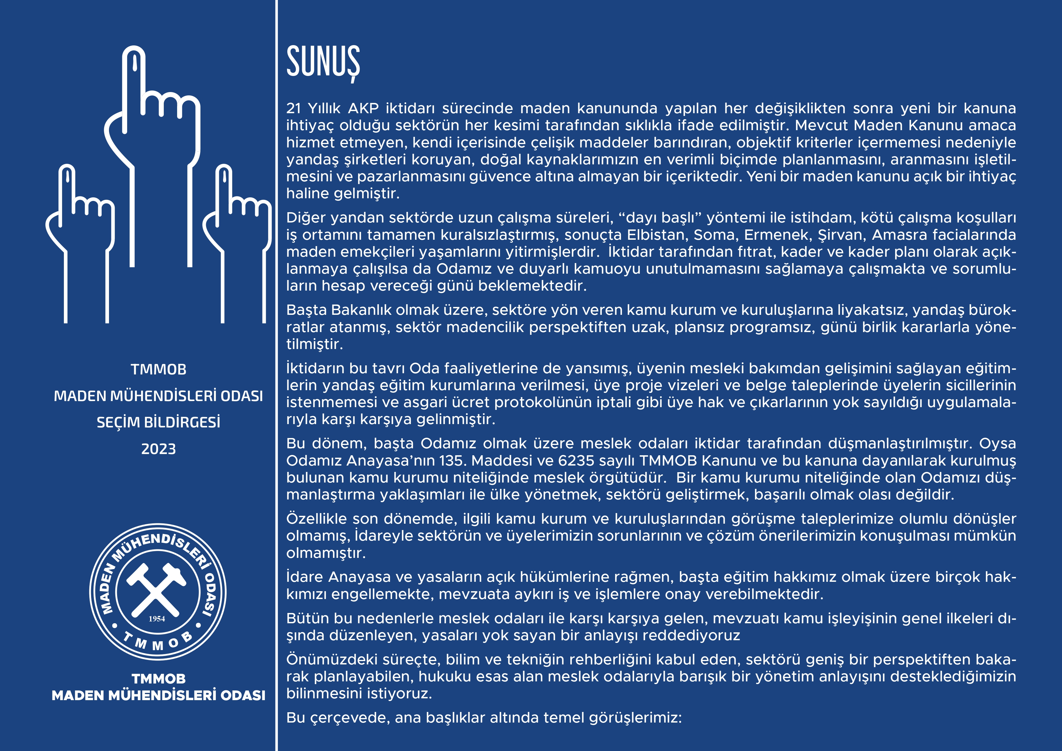 TMMOB MADEN MÜHENDİSLERİ ODASI SEÇİM BİLDİRGESİ YAYIMLANDI