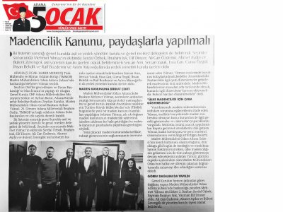 18-19 Ocak 2020 tarihlerinde yapılan TMMOB Maden Mühendisleri Odası Adana Şubesi 10. Olağan Genel Kurulu ve Seçimleri sonrasında şubemiz yönetim kurulu görev dağılımı yapıldı. Şubemiz yönetim kurulu görev dağılımı yerel basında yer aldı.
