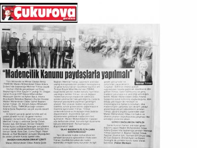 TMMOB MADEN MÜHENDİSLERİ ODASI ADANA ŞUBESİ 10. DÖNEM GÖREV DAĞILIMI YEREL BASINDA YER ALDI (10.02.2020)