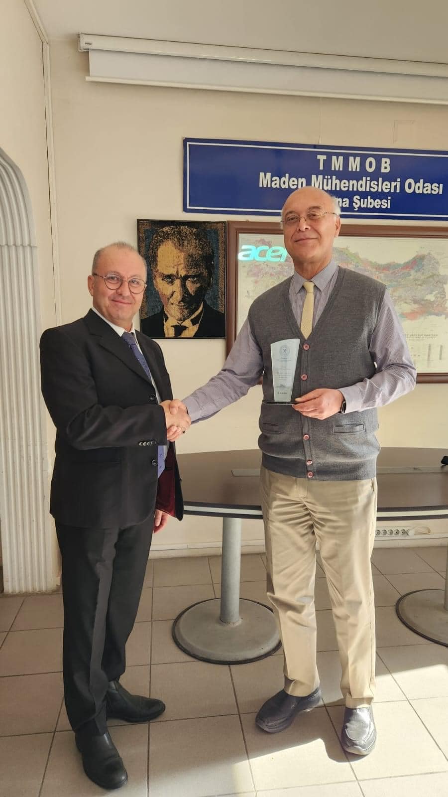 TMMOB Maden Mühendisleri Odası Adana Şubesi ve Çukurova Üniversitesi Maden Mühendisliği Bölümü işbirliği ile Prof. Dr. Suphi URAL hocamızla birlikte Yer Altı Maden Ocaklarında Havalandırma Ve Emniyet Eğitiminin 4.peryodunu meslektaşlarımızın katılımı ile şube binamızda gerçekleştirdik. Bu eğitim çalışmasına özverili bir şekilde destek veren, Prof. Dr. Suphi URAL hocamıza teşekkür plaketini takdim ettik.